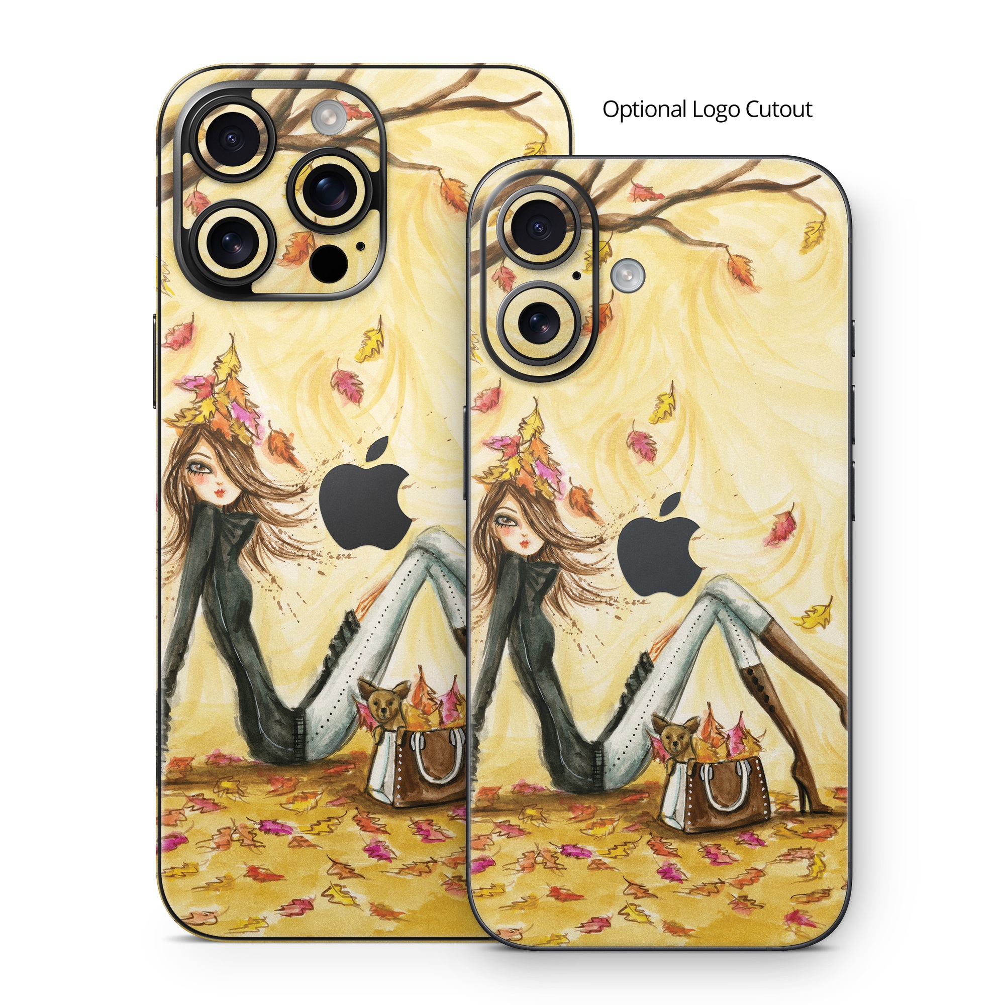 iStyles iPhone 16 Series Skin design of Painting, Watercolor paint, Tree, Art, Illustration, Plant, Modern art, Visual arts, Still life, Fictional character, with yellow, red, brown, orange, black, white colors, and tagged with people, nature, objects, fashion.