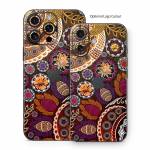 iStyles iPhone 16 Series Skin design of Pattern, Motif, Visual arts, Design, Art, Floral design, Textile, Paisley, Tapestry, Circle, with brown, purple, red, white, black colors, and tagged with patterns, flowers, nature.