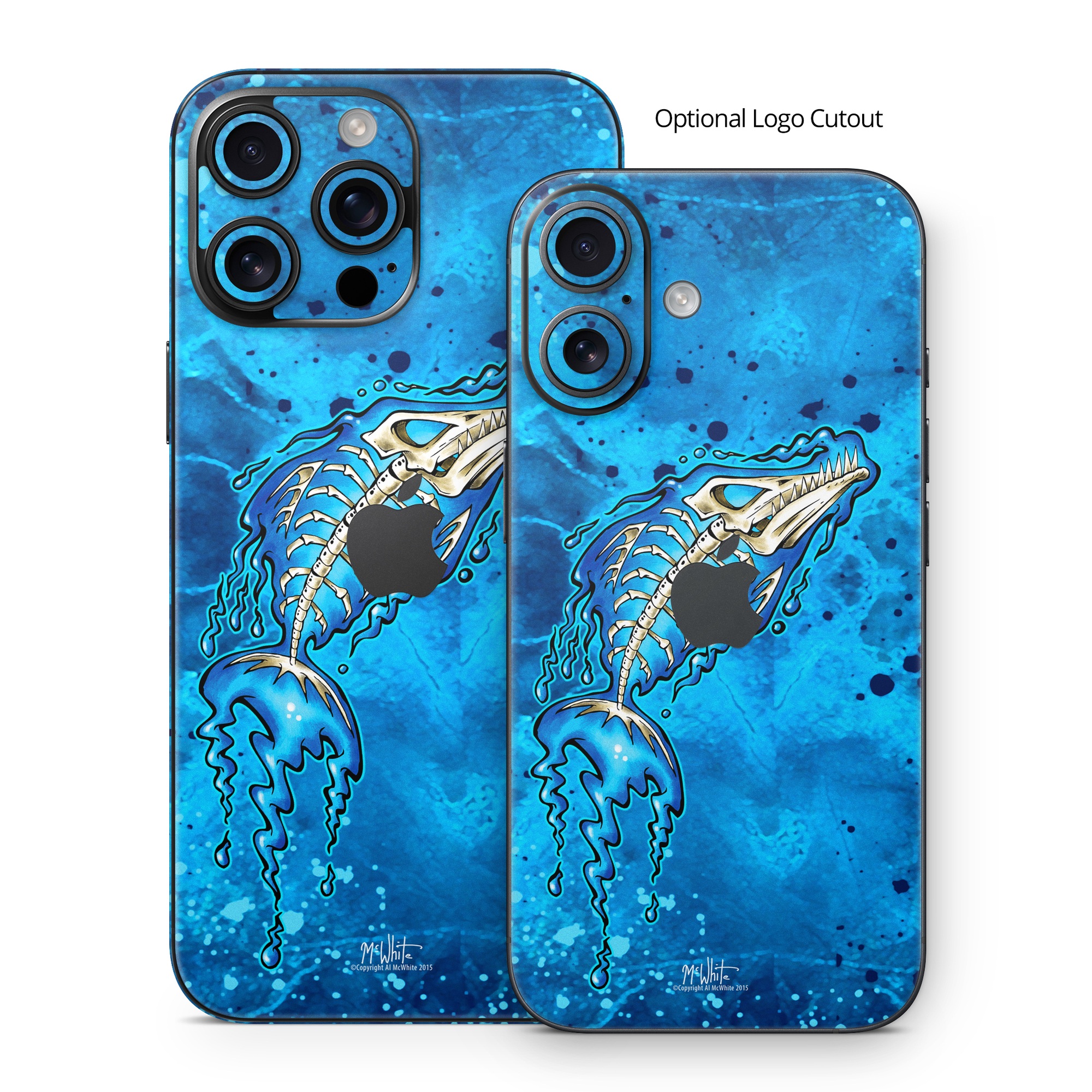 iStyles iPhone 16 Series Skin design of Blue, Water, Aqua, Electric blue, Illustration, Graphic design, Liquid, Graphics, Marine biology, Art, with blue, white colors, and tagged with skulls, animals.