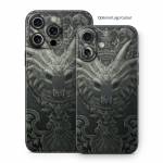 iStyles iPhone 16 Series Skin design of Demon, Dragon, Fictional character, Illustration, Supernatural creature, Drawing, Symmetry, Art, Mythology, Mythical creature, with black, gray colors, and tagged with fantasy, patterns.