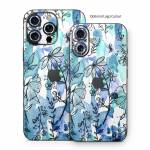 iStyles iPhone 16 Series Skin design of Blue, Pattern, Turquoise, Aqua, Design, Textile, Wildflower, Plant, Wrapping paper, Gift wrapping, with blue, white, black, purple colors, and tagged with patterns, flowers, blue, floral, flowers, ink, penandink, teal, watercolor.