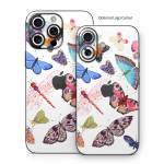iStyles iPhone 16 Series Skin design of Butterfly, Pollinator, Insect, Arthropod, Organism, Moths and butterflies, Art, Symmetry, Wing, Illustration, with white, blue, green, red, yellow, orange, pink, brown, purple colors, and tagged with patterns, animals, bug, butterflies, butterfly, drawing, insects, nature, outdoors, watercolor.
