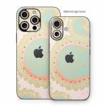 iStyles iPhone 16 Series Skin design of Pattern, Visual arts, Paisley, Pink, Design, Motif, Line, Wallpaper, Peach, with pink, blue, red colors, and tagged with patterns, flowers, brightcolors, girly, paisley, pattern, pink.