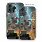 iStyles iPhone 16 Series Skin design of Lightning, Felidae, Carnivore, Art, Whiskers, Big cats, Cg artwork, Terrestrial animal, Small to medium-sized cats, Thunder, with black, blue, red, yellow, white, brown, gray, orange colors, and tagged with animals, fantasy, objects, urban, cat, robot, fight, lightning, helicopter.