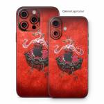 iStyles iPhone 16 Series Skin design of Orange, Art, Font, Sleeve, Tints and shades, Symbol, Pattern, Logo, Magenta, Graphics, with black, red, white, gray colors, and tagged with skulls, hearts, flowers, objects, forever, together.