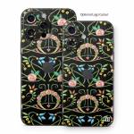 iStyles iPhone 16 Series Skin design of Flower, Rectangle, Textile, Ornament, Plant, Line, Motif, Creative arts, Art, Pattern, with black, pink, blue, green, yellow colors, and tagged with patterns, flowers, flower, arc, pattern.