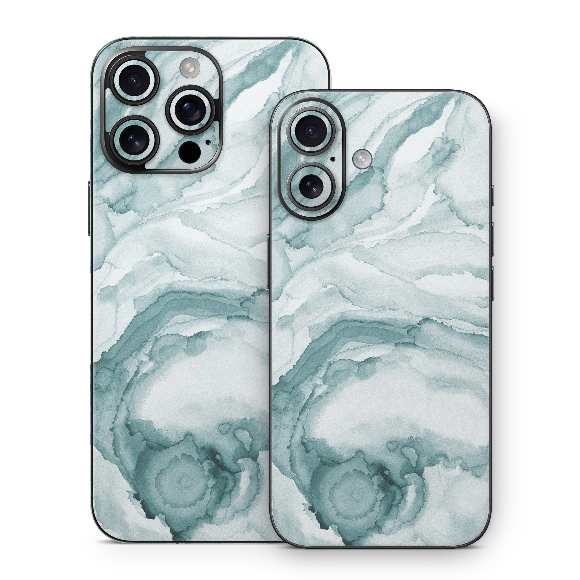 iStyles iPhone 16 Series Skin design of Liquid, Fluid, Snow, Polar ice cap, Ice cap, Aqua, Melting, Glacial landform, Arctic ocean, Pattern, with blue, gray, white colors, and tagged with patterns, abstract, paint, painting, water, watercolor.