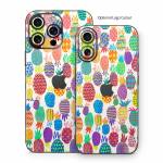 iStyles iPhone 16 Series Skin design of Colorfulness, Textile, Art, Line, Circle, Symmetry, Pattern, Electric blue, Visual arts, Design, with white, red, blue, green, yellow, purple, pink colors, and tagged with patterns, objects, color, colorful, food, fruit, paint, pineapple, pineapples, summer, tropic, tropical, vacation.