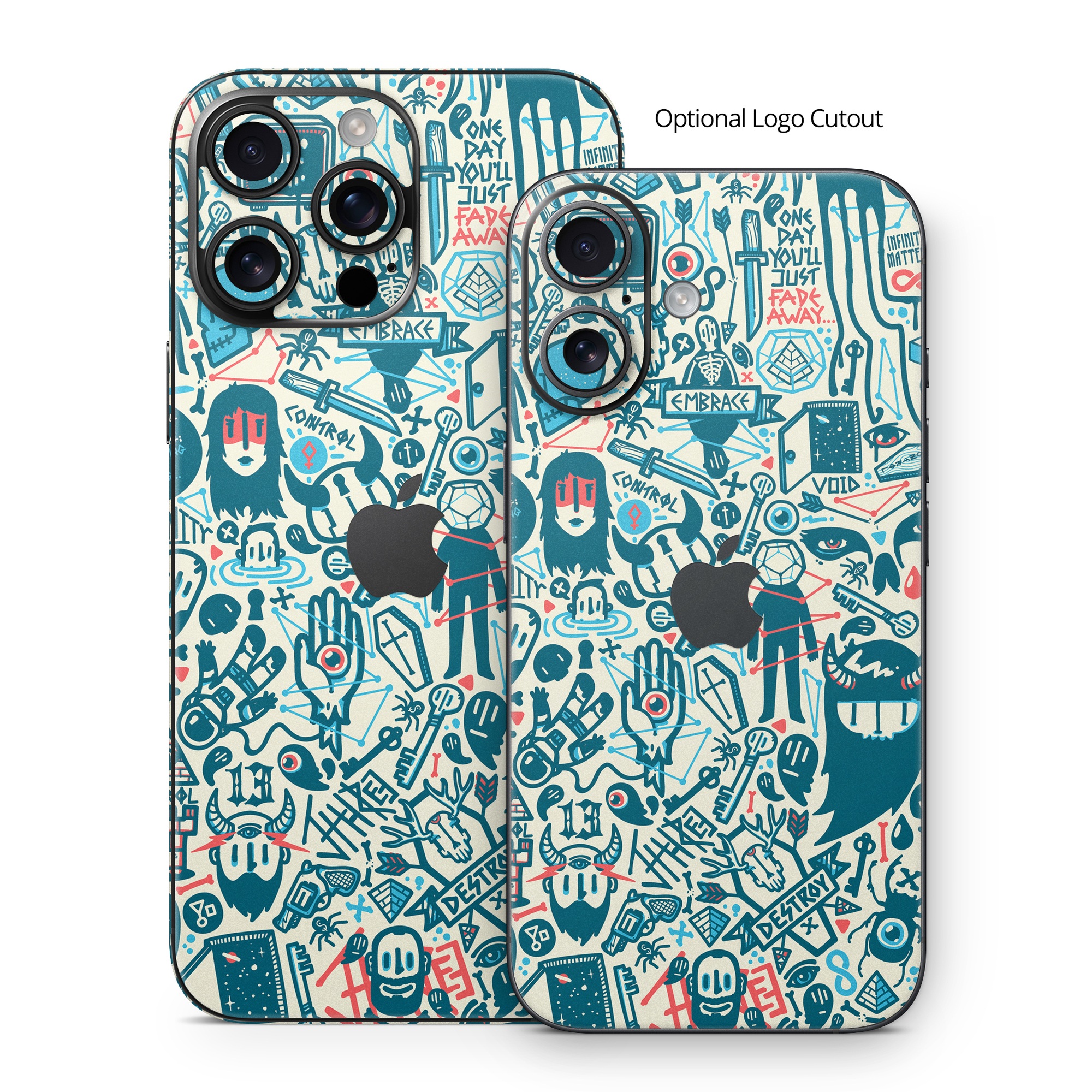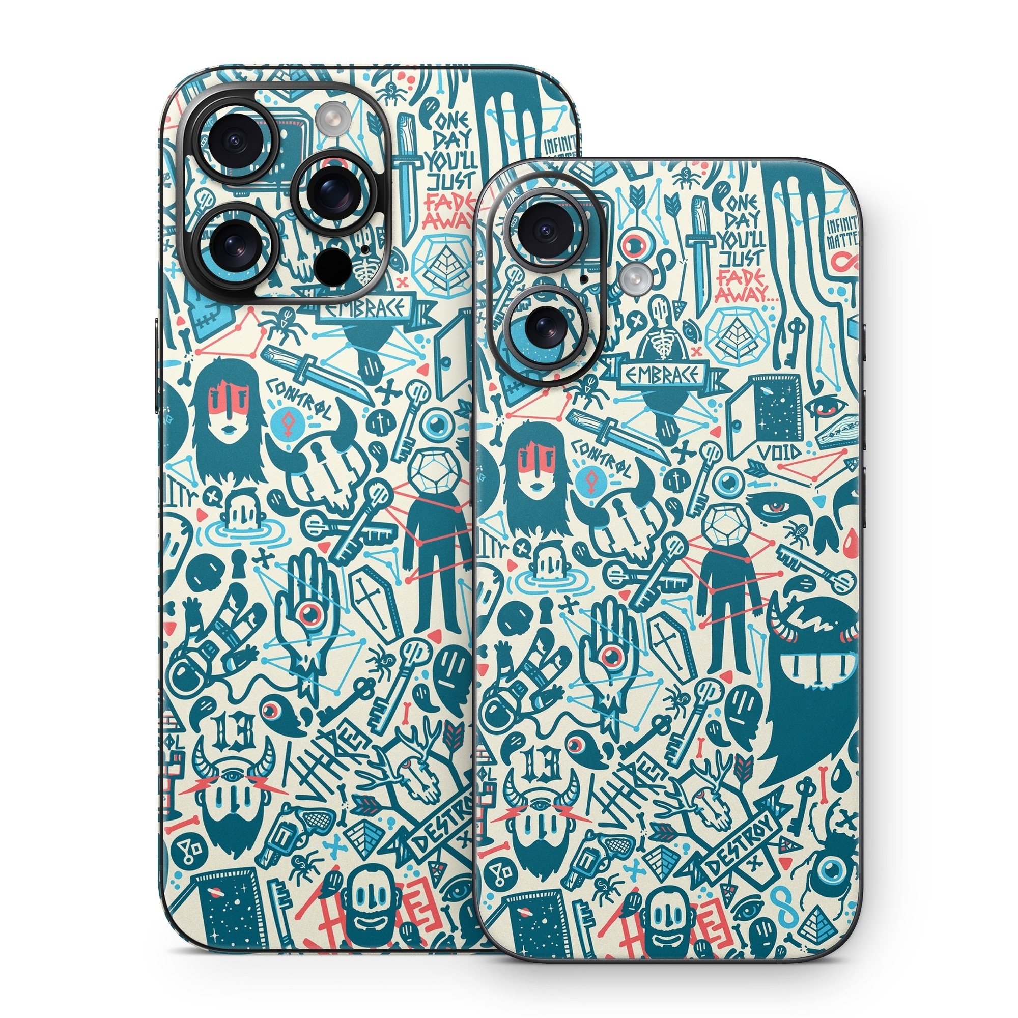iStyles iPhone 16 Series Skin design of Pattern, Psychedelic art, Turquoise, Art, Design, Visual arts, Line, Drawing, Doodle, Graphic design, with white, green, blue, red colors, and tagged with patterns, animals, people, objects, signs.