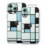 iStyles iPhone 16 Series Skin design of Blue, Line, Turquoise, Pattern, Rectangle, Design, Parallel, Square, Symmetry, Tints and shades, with black, blue, green colors, and tagged with patterns, blocks, blue, cool, geometry, lines.