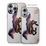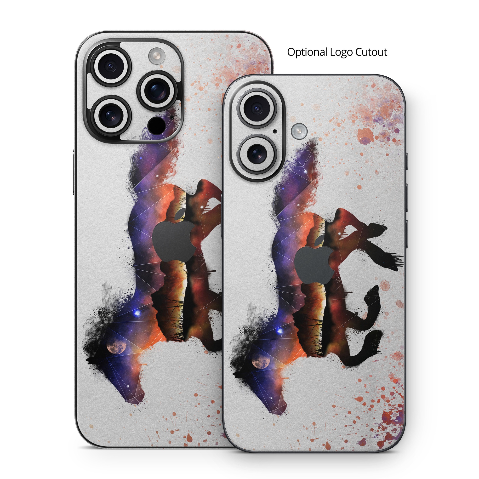 iStyles iPhone 16 Series Skin design of Watercolor paint, Illustration, Art, Horse, Paint, Drawing, Graphic design, Painting, Visual arts, Mustang horse, with gray, white, purple, red, yellow, black, orange colors, and tagged with animals, nature, space, animals, horse, moon, nature, night, stars, watercolor.