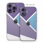iStyles iPhone 16 Series Skin design of Violet, Purple, Turquoise, Line, Pattern, Design, Graphic design, Font, Triangle, Magenta, with white, blue, purple colors, and tagged with patterns, block, blocking, color, colorblock, geometric, shape, simple.
