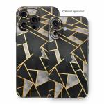 iStyles iPhone 16 Series Skin design of Pattern, Triangle, Yellow, Line, Tile, Floor, Design, Symmetry, Architecture, Flooring, with black, gray, yellow colors, and tagged with patterns.