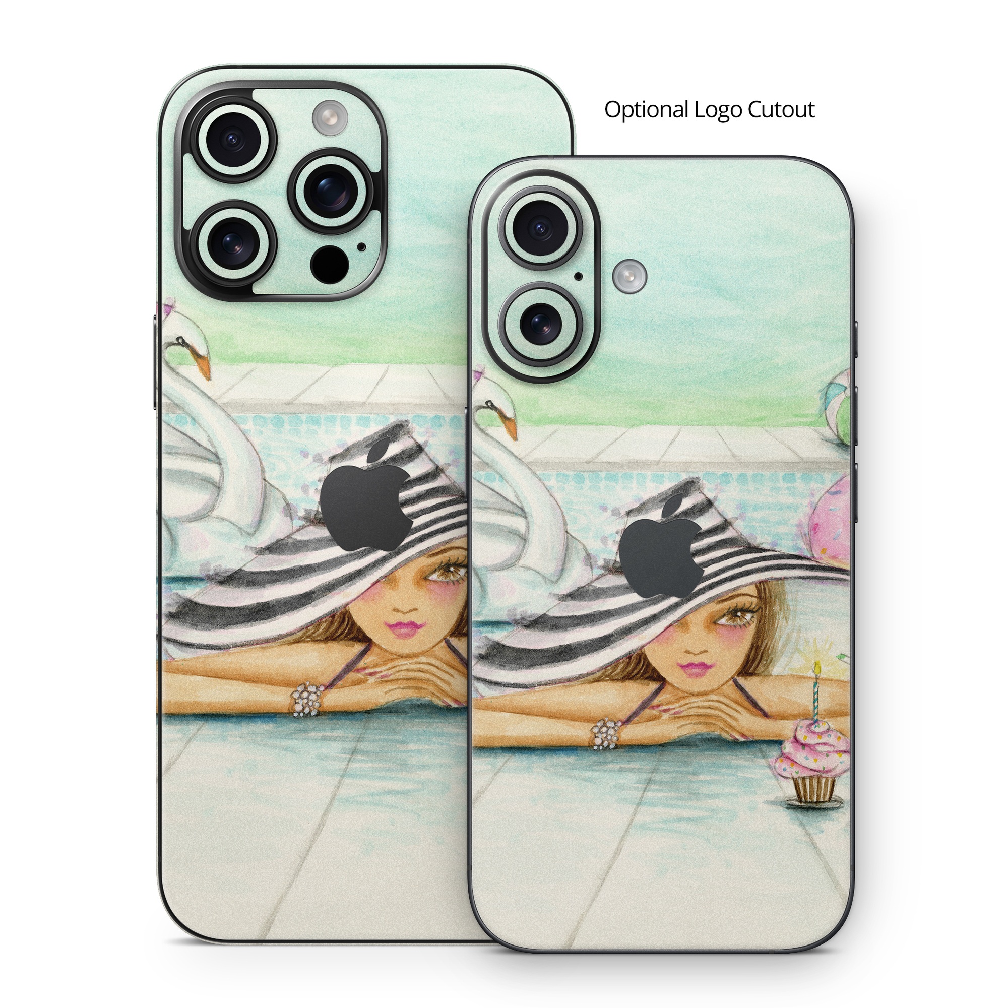iStyles iPhone 16 Series Skin design of Watercolor paint, Illustration, Cartoon, Art, Painting, Drawing, Fictional character, with blue, pink, white, black, brown, red, green, yellow colors, and tagged with people, fineart, objects, animals, urban, drawn, face, faces, fashion, handdrawn, painting, portrait, woman, women, donut, present, cocktail, drink, swan, swimming, ball, cupcake.