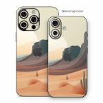 iStyles iPhone 16 Series Skin design of Sky, Light, Nature, Natural landscape, Art, Landscape, Moon, Mountainous landforms, Formation, Erg, with orange, yellow, brown, green, white, black colors, and tagged with nature, desert, landscape, cactus, cliffs, sunset, moon, sand.