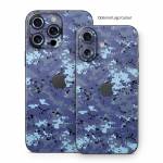 iStyles iPhone 16 Series Skin design of Blue, Purple, Pattern, Lavender, Violet, Design, with blue, gray, black colors, and tagged with military, lookslike, patterns.