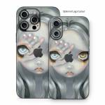 iStyles iPhone 16 Series Skin design of Face, Head, Cg artwork, Eye, Illustration, Organ, Fictional character, Art, Iris, Darkness, with black, gray, blue, green colors, and tagged with fantasy, people.