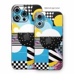 iStyles iPhone 16 Series Skin design of White, Yellow, Art, Font, Pattern, Circle, Design, Creative arts, Graphics, Electric blue, with blue, pink, white, black, yellow colors, and tagged with abstract, abstract, checkered, bricks, circles, lines.