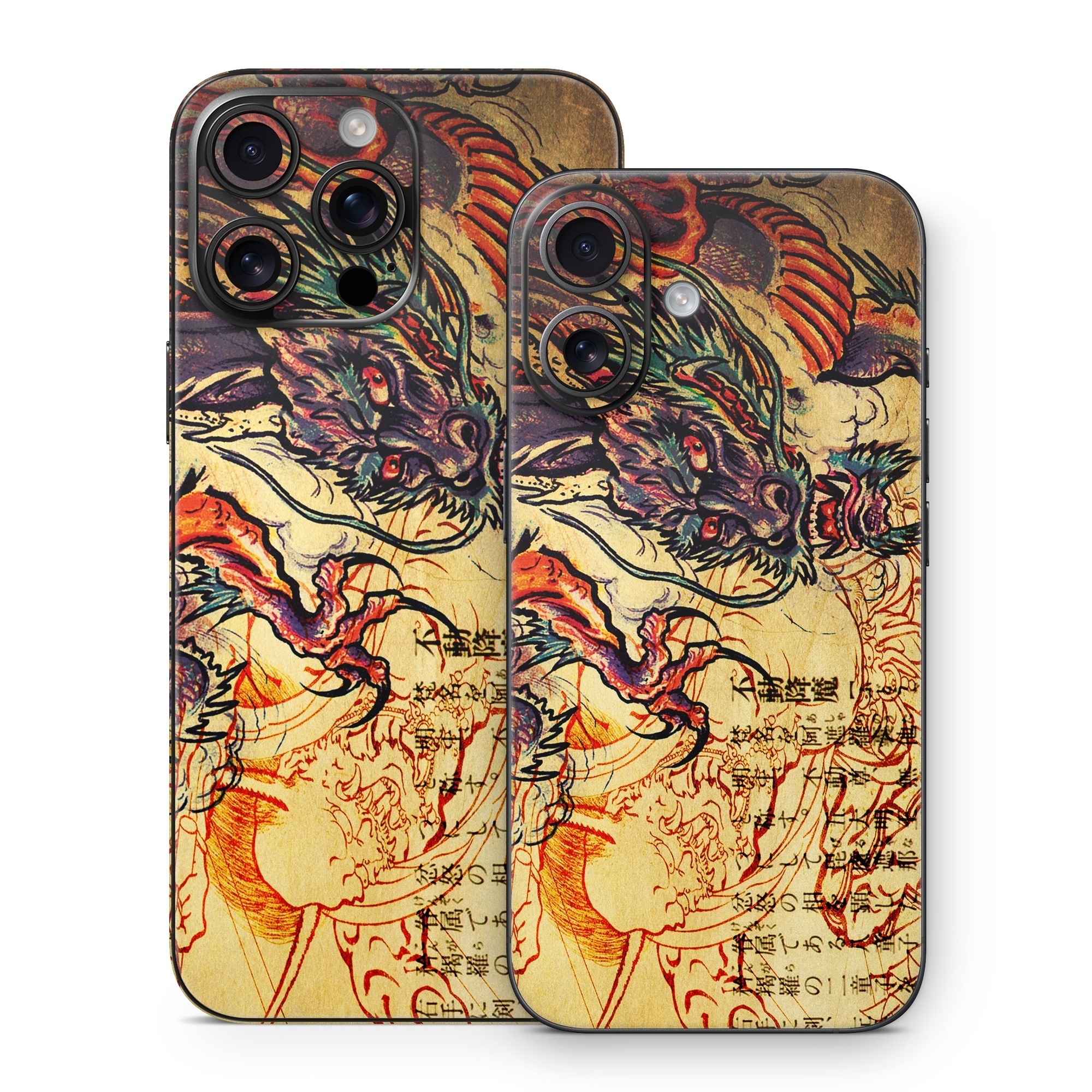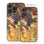 iStyles iPhone 16 Series Skin design of Illustration, Fictional character, Art, Demon, Drawing, Visual arts, Dragon, Supernatural creature, Mythical creature, Mythology, with black, green, red, gray, pink, orange colors, and tagged with fantasy.