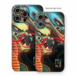 iStyles iPhone 16 Series Skin design of Dragon, Fictional character, Illustration, Art, Cg artwork, Fiction, Mythical creature, Graphics, with black, green, red, yellow, orange colors, and tagged with animals, fantasy, blue, dragons, green, orange, tattoo.