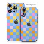 iStyles iPhone 16 Series Skin design of Rectangle, Azure, Textile, Orange, Aqua, Font, Symmetry, Magenta, Tints and shades, Parallel, with blue, yellow, orange, green, pink colors, and tagged with patterns, checkered, squares, colorful.