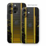 iStyles iPhone 16 Series Skin design of Yellow, Plant, Font, Symmetry, Terrestrial plant, Tower block, Parallel, Pattern, Tints and shades, Rectangle, with black, yellow, gray, orange colors, and tagged with patterns, stripes, lines, markings.