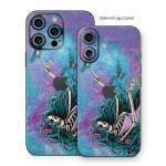 iStyles iPhone 16 Series Skin design of Green, Purple, Painting, Paint, Art, Cg artwork, Mythical creature, Musical instrument, Graffiti, Artist, with blue, purple, white, gray, brown colors, and tagged with skulls, flowers, animals, blue, hair, purple, dress, beautiful, woman, girl, bird.