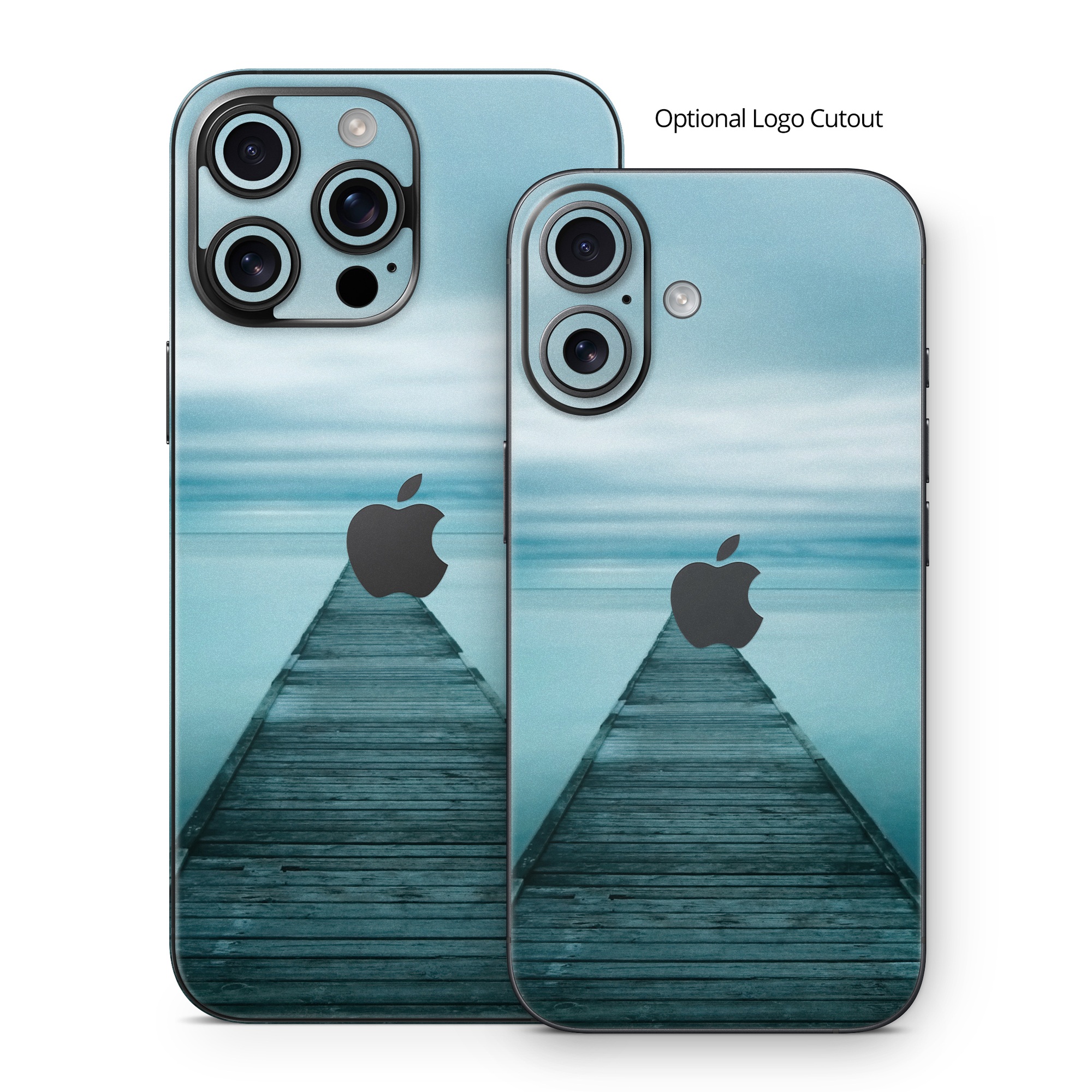 iStyles iPhone 16 Series Skin design of Sea, Water, Horizon, Sky, Blue, Ocean, Daytime, Calm, Fixed link, Symmetry, with black, blue, gray colors, and tagged with photos, nature.