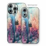 iStyles iPhone 16 Series Skin design of Blue, Pink, Sky, Turquoise, Design, Rock, Textile, Photography, Cloud, Winter, with white, blue, purple, pink, red colors, and tagged with abstract, fantasy, space, abstract, bright, coral, geometric, geometry, glitch, lines, matrix, space.