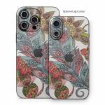 iStyles iPhone 16 Series Skin design of Botany, Plant, Leaf, Pattern, Flower, Illustration, Design, Motif, Protea family, Flowering plant, with green, blue, pink, red, yellow, orange, gray, brown colors, and tagged with flowers, patterns, feather, flower.