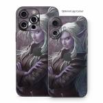 iStyles iPhone 16 Series Skin design of Cg artwork, Beauty, Purple, Lady, Illustration, Fictional character, Long hair, Photography, Art, Portrait, with black, gray, purple colors, and tagged with fantasy, people, elf, purple.