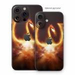 iStyles iPhone 16 Series Skin design of Light, Atmosphere, Orange, Space, Heat, Sky, Darkness, Art, Geological phenomenon, Universe, with black, red, green, pink colors, and tagged with flames, fantasy.