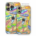 iStyles iPhone 16 Series Skin design of Pattern, Design, Visual arts, Footwear, Art, with gray, green, blue, pink, purple, orange colors, and tagged with objects, fashion, patterns.