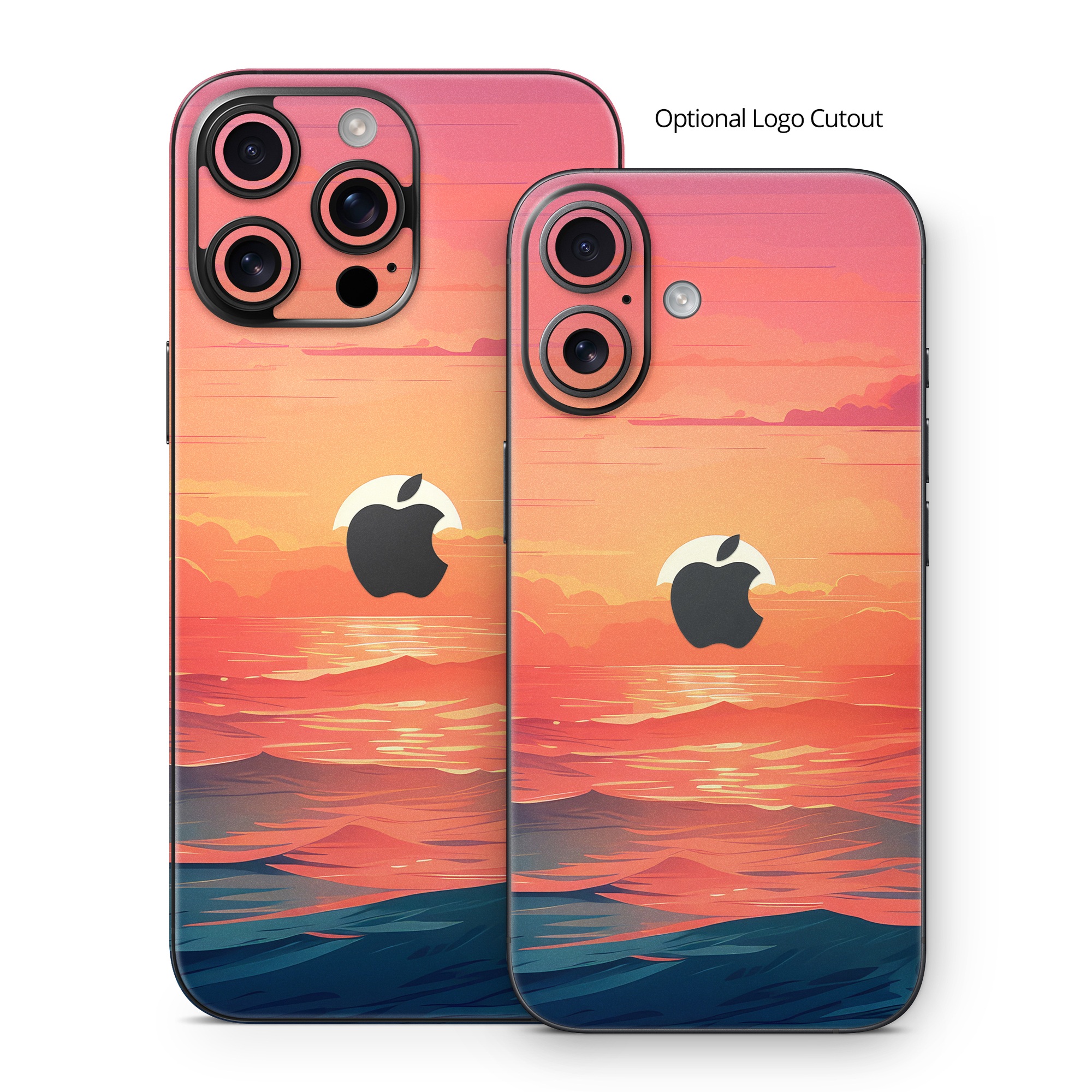 iStyles iPhone 16 Series Skin design of Cloud, Sky, Atmosphere, Daytime, Afterglow, Ecoregion, Nature, Dusk, Water, Orange, with blue, red, yellow, orange, pink, black, purple colors, and tagged with nature, sea, landscape, sunset, waves.