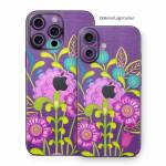 iStyles iPhone 16 Series Skin design of Flower, Pattern, Plant, Violet, Botany, Visual arts, Design, Floral design, Art, Magenta, with blue, purple, green, gray, red colors, and tagged with flowers.
