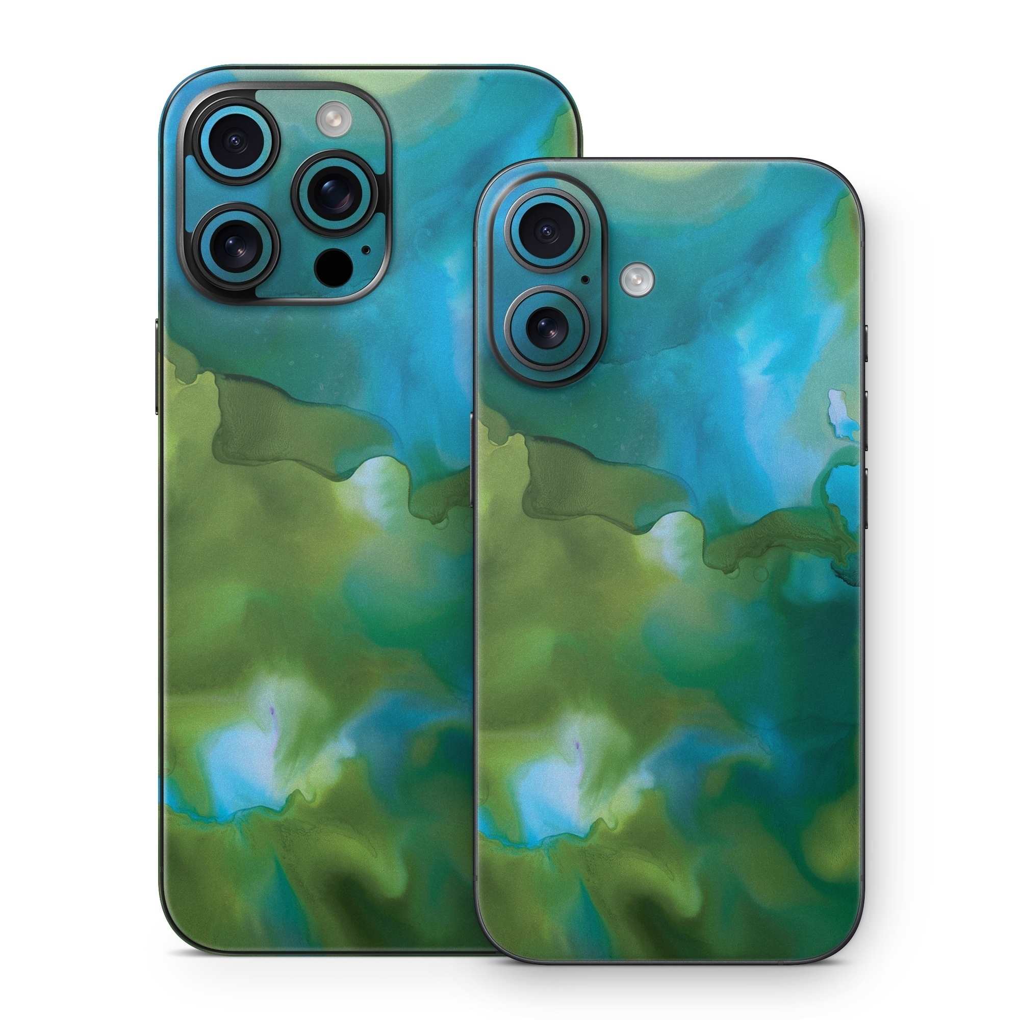 iStyles iPhone 16 Series Skin design of Aqua, Blue, Green, Painting, Turquoise, Teal, Water, Acrylic paint, Art, Organism, with blue, green colors, and tagged with abstract, abstract, blue, green, marble, marbled, watercolor.