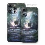 iStyles iPhone 16 Series Skin design of Nature, Green, Darkness, Natural environment, Light, Infrastructure, Tunnel, Tree, Forest, Art, with white, black, brown, green, blue, yellow colors, and tagged with fantasy, animals, nature, animals, butterfly, deer, fantasy, forest, sci-fi, woods.