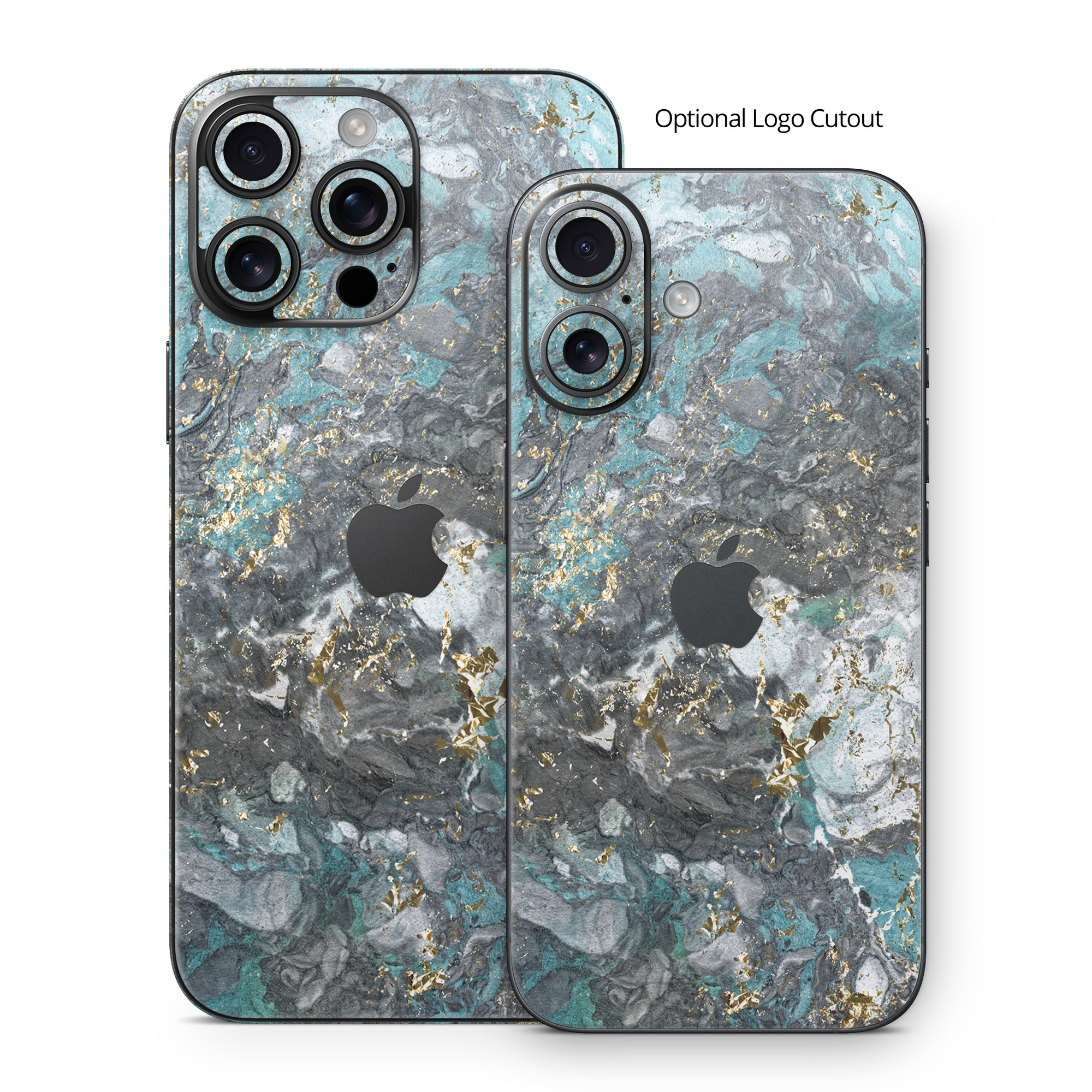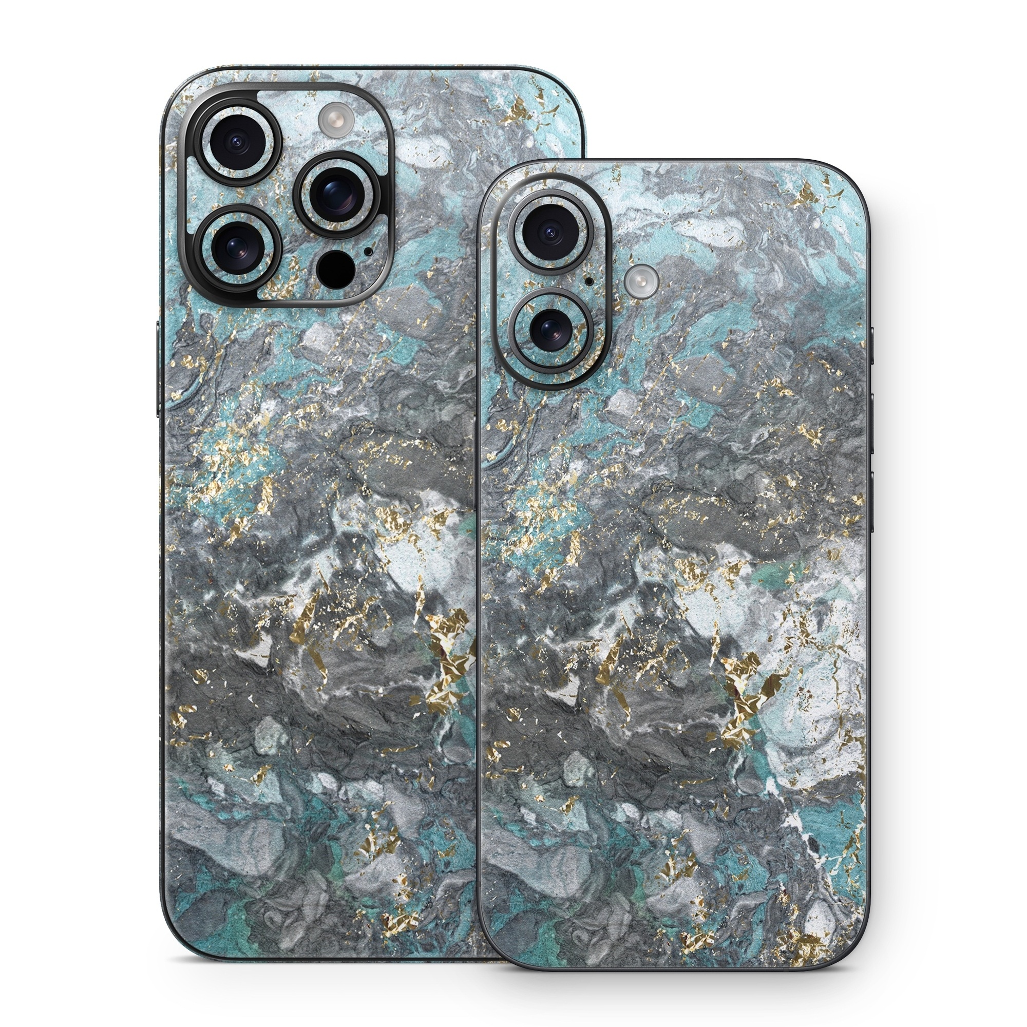 iStyles iPhone 16 Series Skin design of Blue, Turquoise, Green, Aqua, Teal, Geology, Rock, Painting, Pattern, with black, white, gray, green, blue colors, and tagged with patterns, lookslike, nature.