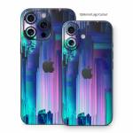 iStyles iPhone 16 Series Skin design of Blue, Green, Light, Colorfulness, with blue, purple, pink, white colors, and tagged with abstract, space, blue, geometric, geometry, glitch, green, lines, matrix, pink, purple, space.