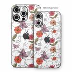 iStyles iPhone 16 Series Skin design of Flower, Plant, White, Product, Petal, Branch, Rectangle, Botany, Textile, Creative arts, with white, red, purple, green, orange colors, and tagged with patterns, flowers, people, drawing, flowers, outline, pattern, women.