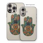 iStyles iPhone 16 Series Skin design of Art, Pattern, Symmetry, Circle, Font, Visual arts, Illustration, Painting, Symbol, Drawing, with blue, red, yellow, orange, green colors, and tagged with patterns, flowers, signs, people, evileye, flowers, hand, protection.