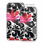 iStyles iPhone 16 Series Skin design of White, Product, Green, Botany, Petal, Textile, Pink, Creative arts, Line, Magenta, with black, white, pink, red colors, and tagged with patterns, flowers, black, blackandwhite, floral, flower, flowers, paisley, white.