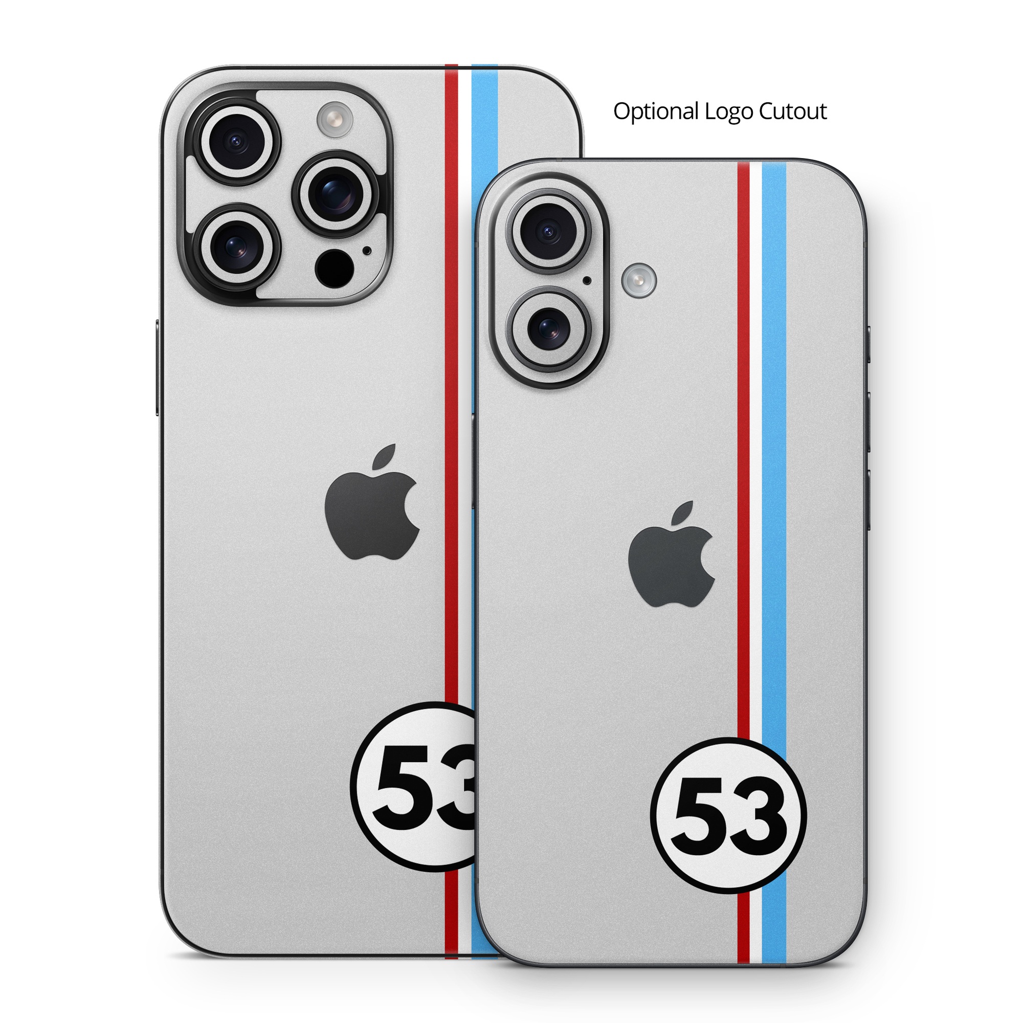 iStyles iPhone 16 Series Skin design of Line, Sign, Games, with gray, blue, red, white, black colors, and tagged with lookslike, signs, racing, racer, 53, fifty, three.