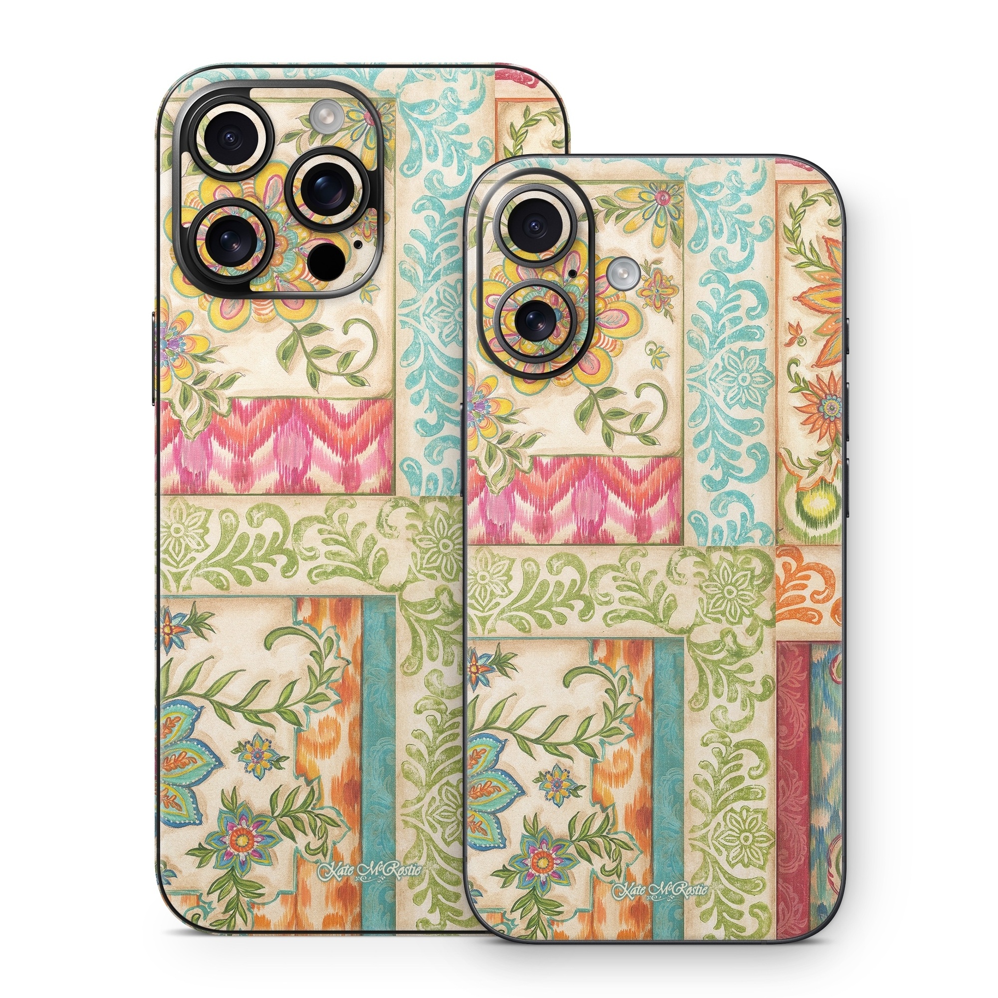 iStyles iPhone 16 Series Skin design of Flower, Rectangle, Plant, Botany, Textile, Aqua, Art, Pattern, Symmetry, Motif, with red, orange, green, blue, pink, yellow colors, and tagged with fineart, patterns, flowers, flower, patterns, painting, drawing.