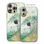 iStyles iPhone 16 Series Skin design of Illustration, Organism, Art, World, Fictional character, with green, yellow, brown colors, and tagged with animals, nature, people, objects, birds, gears, swing, tree.