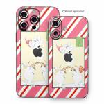 iStyles iPhone 16 Series Skin design of White, Textile, Creative arts, Art, Rectangle, Pattern, Happy, Font, Illustration, Design, with white, black, yellow, red, pink, green, orange colors, and tagged with people, fantasy, patterns, objects, signs, snowman, stripes, christmas, happy.
