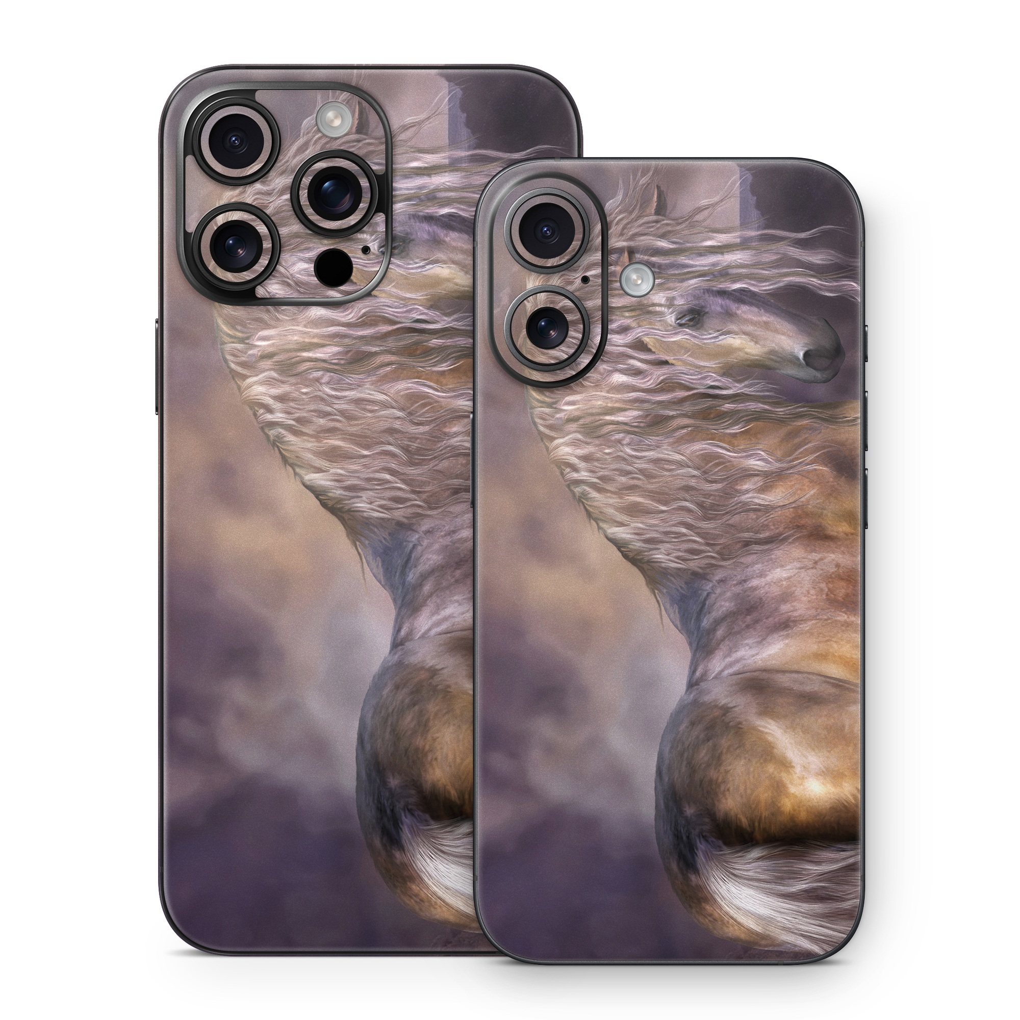 iStyles iPhone 16 Series Skin design of Horse, Mane, Stallion, Mustang horse, Fictional character, Mare, Painting, Wildlife, Mythical creature, with black, gray, red, blue, green colors, and tagged with animals, nature, animals, horse, nature.