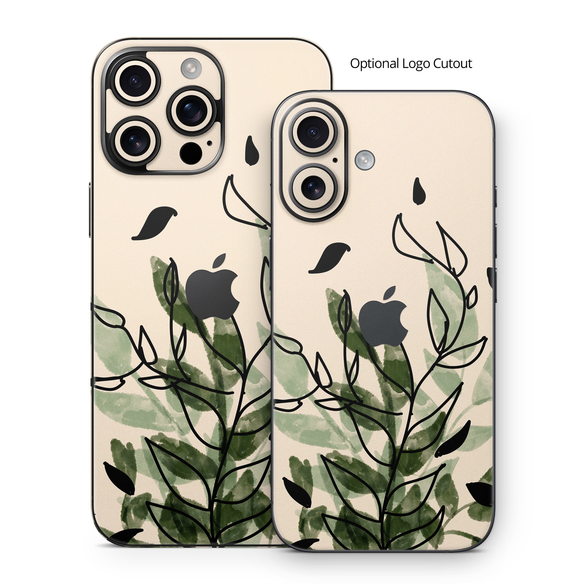 iStyles iPhone 16 Series Skin design of Leaf, Plant, Botany, Branch, Flower, Plant Stem, Pedicel, Twig, Illustration, with green, black, brown colors, and tagged with abstract, nature, abstract, bohemian, boho, illustration, nature, plants.