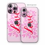 iStyles iPhone 16 Series Skin design of Plant, Pink, Font, Art, Magenta, Pattern, Logo, Peach, Event, Graphics, with pink, red colors, and tagged with signs, hearts, red, love, hearts.
