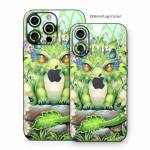 iStyles iPhone 16 Series Skin design of Plant, Green, Leaf, Natural environment, Flower, Terrestrial plant, Grass, Creative arts, People in nature, Art, with green, white, yellow, brown, blue colors, and tagged with fantasy, animals, flowers, nature, dragon, wings, horns.
